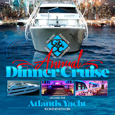 Mark your calendars now and plan to join us for our annual signature event, on Wednesday, September 11, 2024, aboard the Atlantis yacht departing the Elizabeth Waterfront Marina! Our Annual Dinner Cruise allows members to network while aboard a yacht and enjoying a buffet-style dinner with breathtaking views of the Statue of Liberty and New York City skyline. Reserve your spot early as this event sells out every year as space is limited by Coast Guard Regulations.